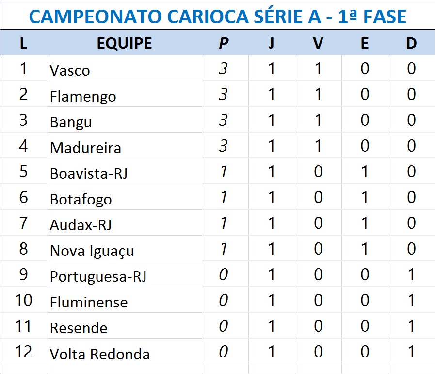Apenas uma partida fechou a primeira rodada da Taça Guanabara - primeiro turno do Campeonato Carioca - na noite desta quinta-feira. Mesmo contando com a estreia de seis reforços: Willian Bigode, Nathan, Pineida, Cris Silva, Cano e Felipe Melo, o Fluminense acabou derrotado pelo Bangu, por 1 a 0, no Estádio Luso Brasileiro, na Ilha do Governador, no Rio de Janeiro.