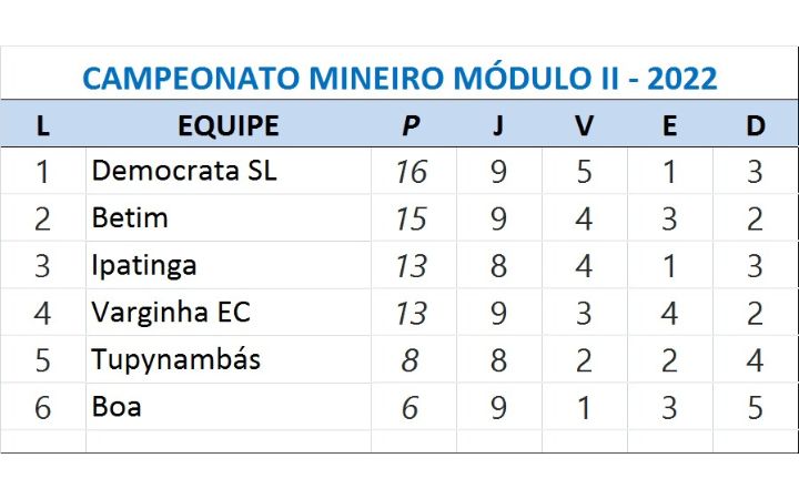Poços de Caldas, MG, 27 (AFI) – Dois jogos na tarde deste domingo movimentaram a penúltima rodada do hexagonal decisivo do Campeonato Mineiro do Módulo II, equivalente a A2 em São Paulo. Democrata de Sete Lagoas, Betim e Ipatinga estão na disputa pelas duas vagas no acesso, com o Varginha ainda tendo chances matemáticas.