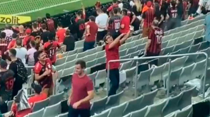 Em um dos vídeos que circulam nas redes, dois torcedores do time paranaense são vistos passando a mão no braço, mostrando a pele branca. Apesar de não ficar claro nas imagens, o gesto foi feito na direção da torcida do Atlético-MG, que ficou na parte superior atrás de uma das metas da Arena.