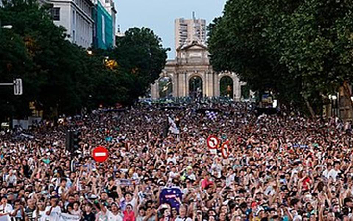Os fãs madridistas lotaram as ruas e se juntaram em um dos locais mais marcantes da capital e no tradicional ponto de celebrações da torcida, a Praça de Cibeles, que fica na junção dos bairros Centro, Retiro e Salamanca.