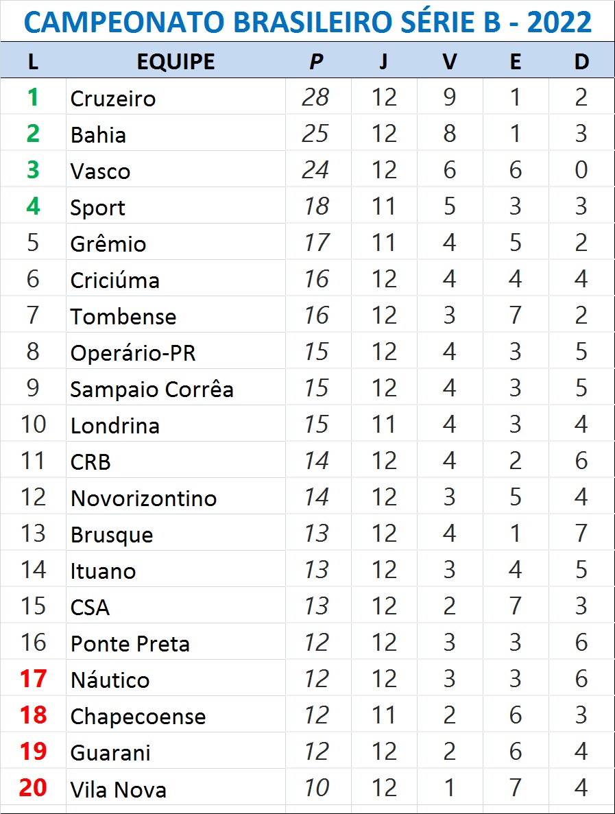 O Vasco segue sendo o único time sem derrota no campeonato, acumulando agora seis vitórias e seis empates. O time carioca segue em terceiro lugar, com 24 pontos - sete pontos a mais que o Grêmio (5º), mas que ainda jogará na segunda-feira, contra o Sport, fora de casa.