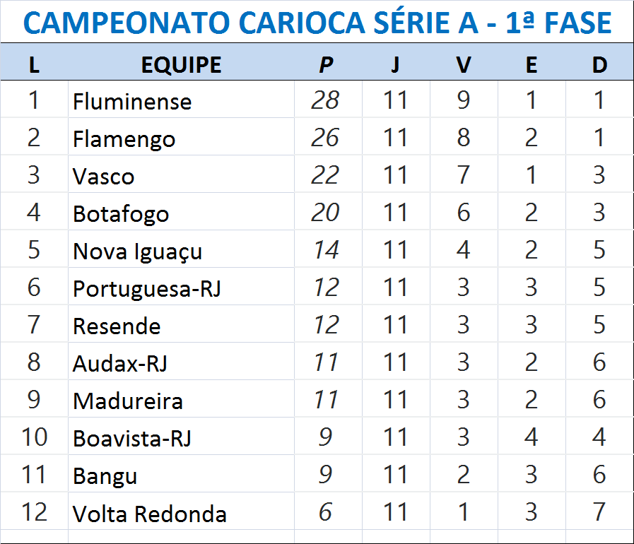 Confira os resultados do último final de semana e a Classificação do Campeonato Carioca de 2022