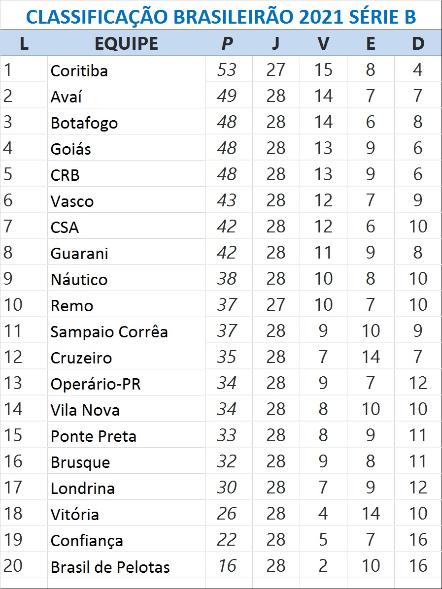 A vitória fez o Vasco ganhar duas posições e chegar ao sexto lugar com 43 pontos, a cinco do Goiás, com 48, em quatro lugar. O Confiança, por outro lado, se manteve na vice-lanterna com 22 pontos, a dez do primeiro rival fora da degola.