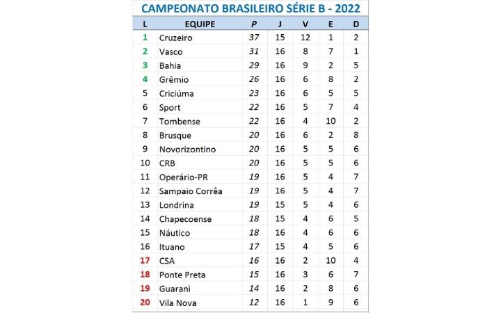 Os dois times voltam a campo só no sábado, pela 17ª rodada. Às 16h, o Sport recebe o Londrina, na Ilha do Retiro, em Recife (PE). Pouco depois, às 16h30, o Vasco duela com o Criciúma, no Estádio Heriberto Hulse, em Criciúma (SC).