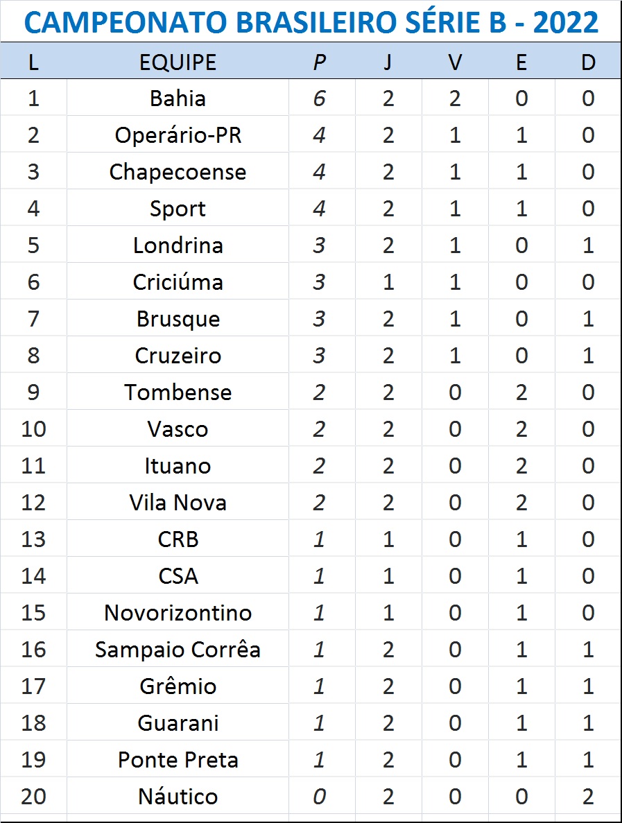 Foi o segundo empate em dois jogos do Ituano, que aparece em 10º lugar, com dois pontos. Já o CSA, que fez sua estreia no campeonato, conquistou o primeiro ponto e é o 13º na classificação geral.