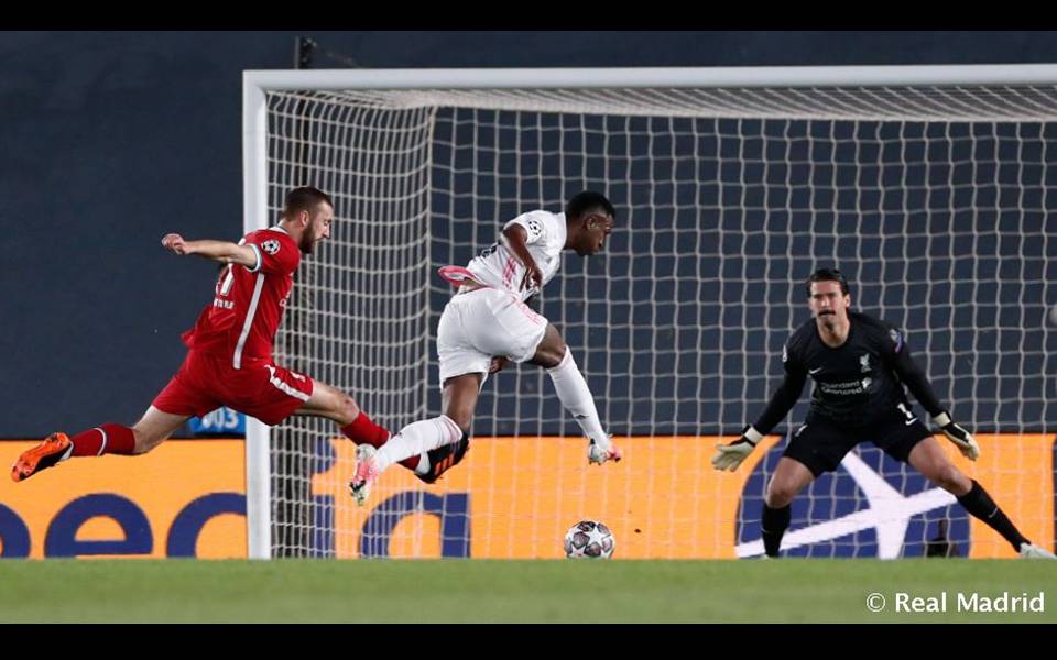 No começo do segundo tempo, o Real mostrou novamente como é um time letal e abriu o placar aos 13. Em progressão, Casemiro, Kross e Valverde construíram uma jogada veloz e deixaram Vinicius Junior para finalizar sozinho. O brasileiro estava no lugar certo, aproveitando falha de marcação de Alexandre-Arnold, que ficou olhando só a bola.
