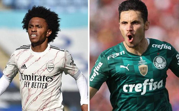 Willian, do Corinthians, é o maior driblador do Brasileirão até aqui. Raphael Veiga, destaque do Palmeiras, é outro que integra as primeiras posições da lista de maiores dribles (Fot Montagem)