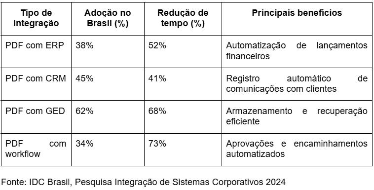 Pesquisa da IDC de 2024 sobre integração de sistemas corporativos revelou que empresas com alto grau de integração entre gestão documental e outros sistemas reportam 47% mais eficiência operacional que empresas com sistemas isolados. Contudo, apenas 41% das empresas brasileiras atingiram esse nível de integração, segundo a mesma pesquisa.
