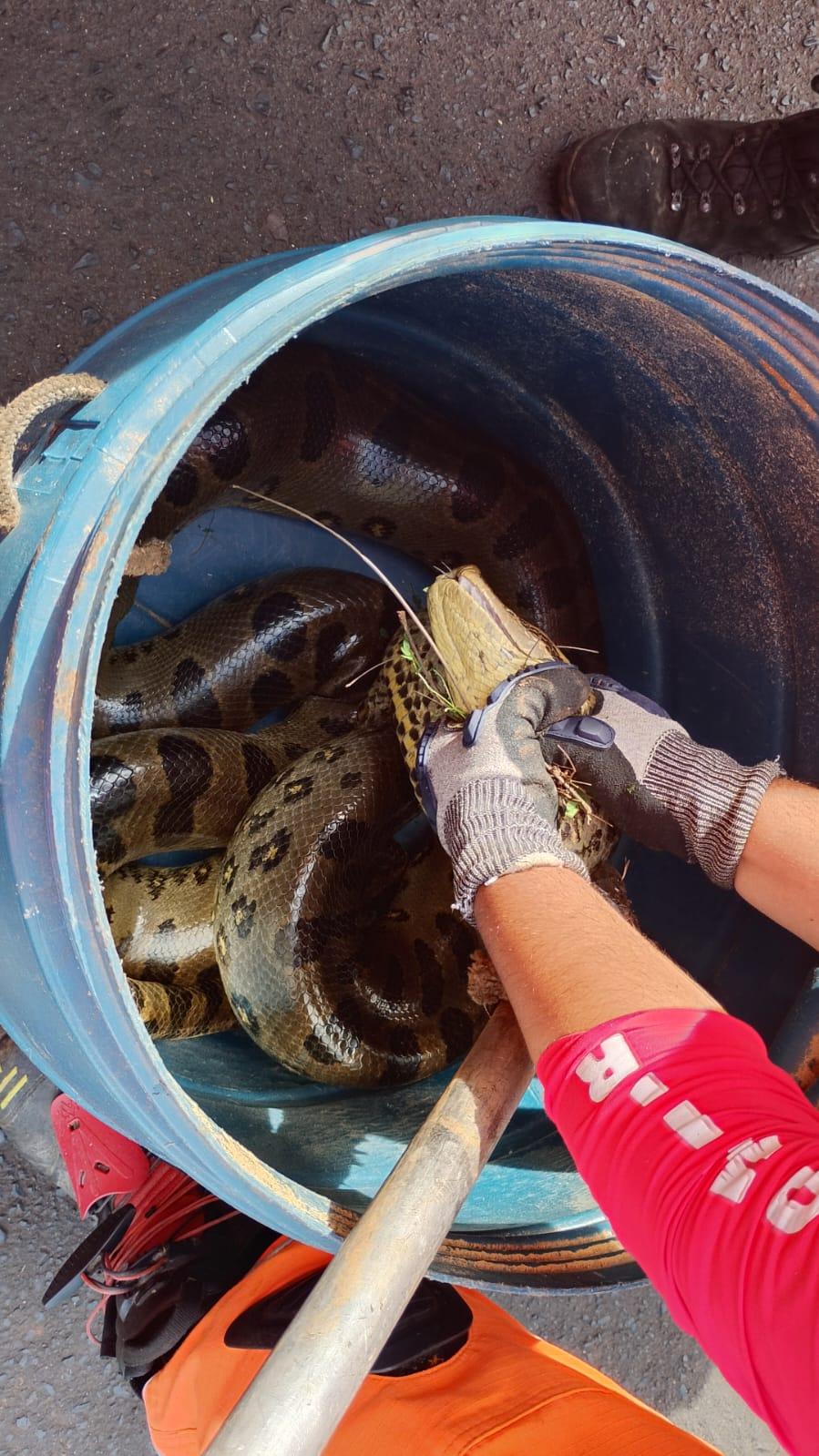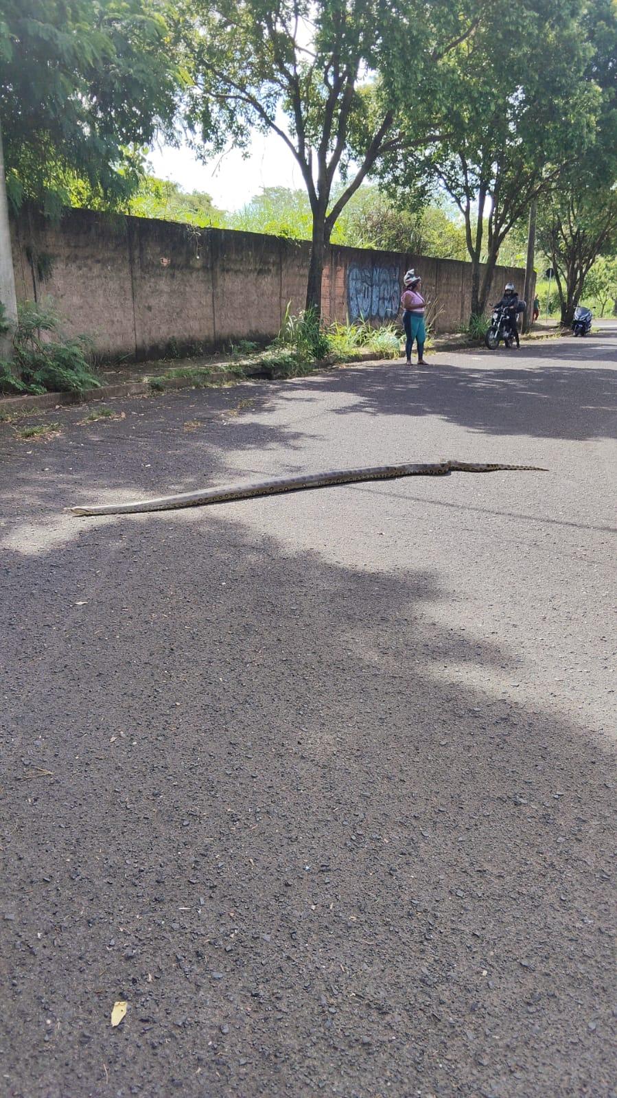 Uma cobra de aproximadamente 3 metros foi capturada pelo Corpo de Bombeiros nesta sexta-feira (10), em Uberaba, após ser localizada na Avenida Rosa Maria Frange Montes. O animal foi encaminhado ao hospital veterinário da Uniube e não houve registro de feridos.