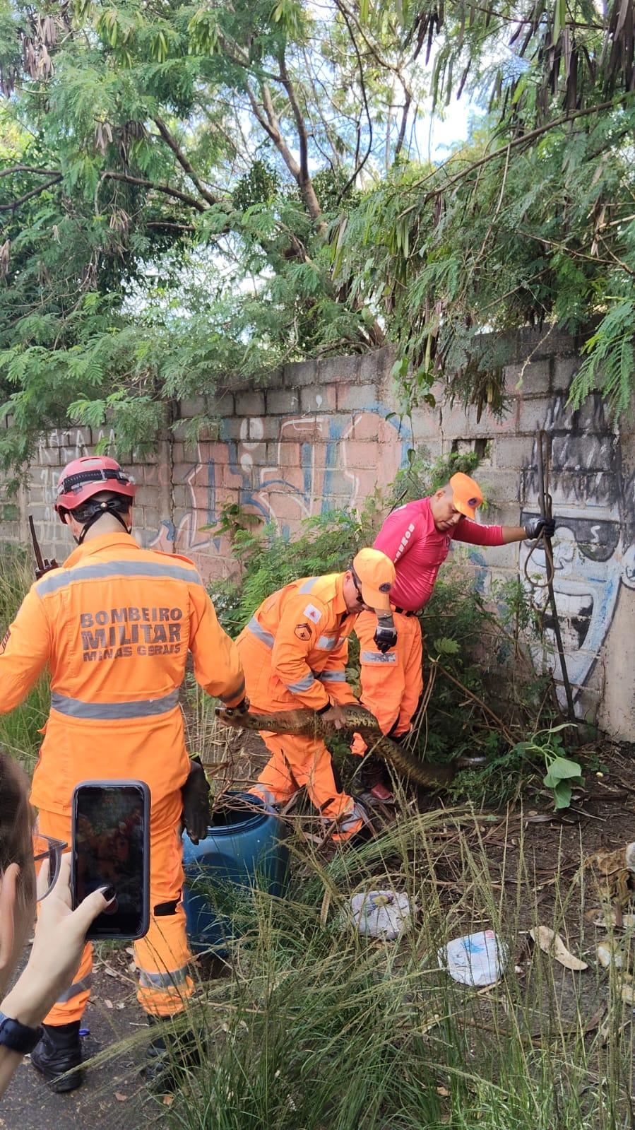 Após o resgate, a cobra foi levada ao hospital veterinário da Universidade de Uberaba (Uniube), onde deverá passar por avaliação.