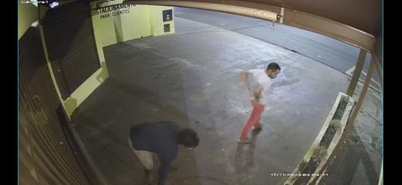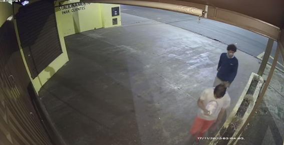 Nas imagens, dois indivíduos aparecem subtraindo a fiação elétrica do local. De acordo com o comerciante, cerca de seis metros de fio elétrico de 2 mm foram levados pelos suspeitos.