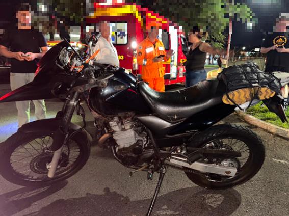 Segundo o registro policial, o carro, conduzido por um idoso de 68 anos, seguia pela rua José Pimenta Camargo quando decidiu acessar um trecho irregular, ignorando completamente a sinalização. No momento da manobra ilegal, uma moto Honda XRE 300, que trafegava no sentido crescente da avenida, atingiu a traseira esquerda do carro.