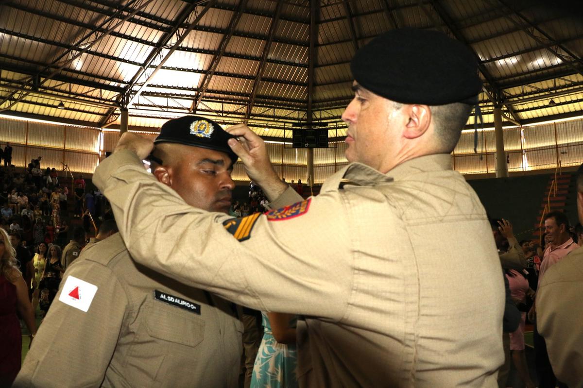 Durante o ato, as boinas foram entregues pelos pais e familiares dos alunos, gesto que reforçou o vínculo afetivo e o reconhecimento pela conquista alcançada.