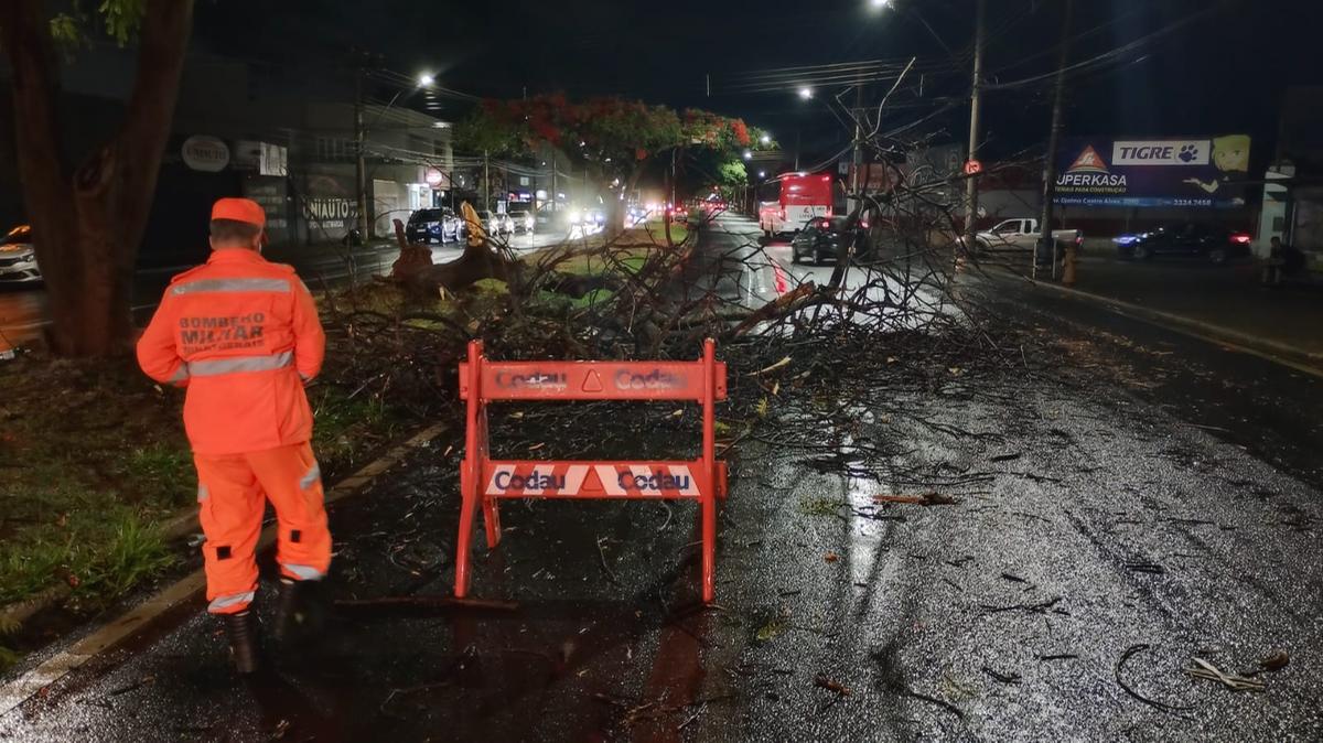 De acordo com o Corpo de Bombeiros, uma das ocorrências foi registrada na avenida Maria Rodrigues da Cunha Resende, onde uma árvore caiu e obstruiu totalmente a via, impedindo a passagem de veículos. A equipe foi acionada para realizar a remoção dos galhos e liberar o trecho.