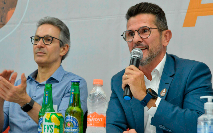 Governador Romeu Zema com o CEO do Grupo Heineken do Brasil, Maurício Giamellaro, no anúncio oficial da instalação da fábrica em Passos nesta quarta-feira (Foto/Cristiano Machado - Imprensa Minas Gerais)