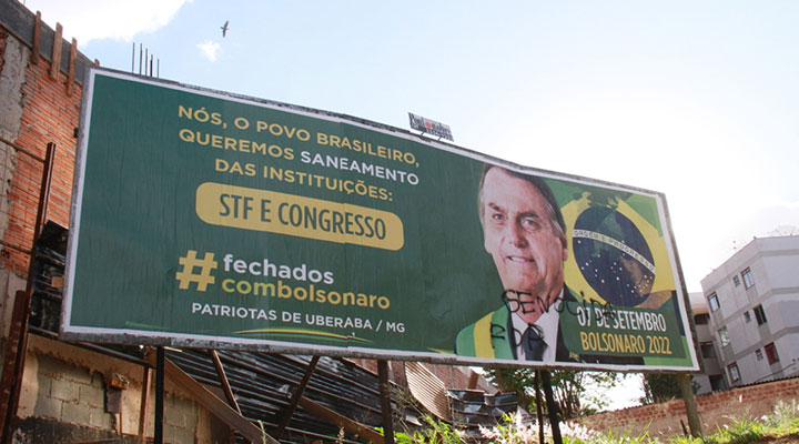 Com a aproximação das manifestações nacionais de 7 de setembro, cartazes do movimento em defesa ao governo de Jair Bolsonaro (sem partido), em Uberaba, reinvindicam mudanças pontuais nos poderes Judiciário e Legislativo a nível federal. Nos letreiros, manifestantes pedem a “sanitização” do Supremo Tribunal Federal e do Congresso Nacional, acirrando ainda mais o embate político dos três poderes.