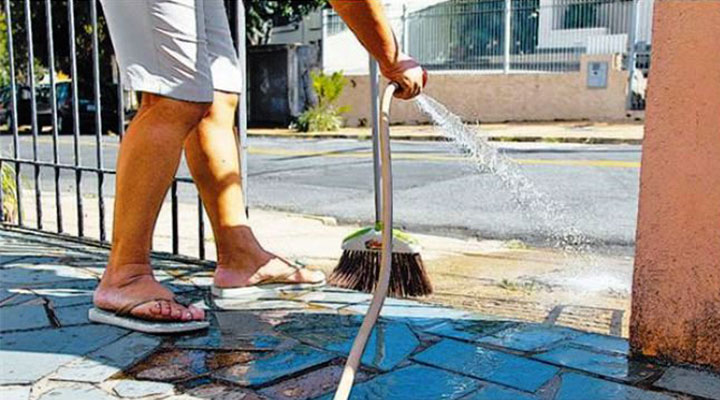 Lavar calçadas com mangueiras, deixando a água tratada escorrer, é um dos itens do decreto que se caracterizam como desperdício