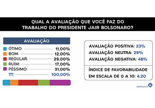 Governo de Bolsonaro é considerado ruim ou péssimo por 48% na cidade