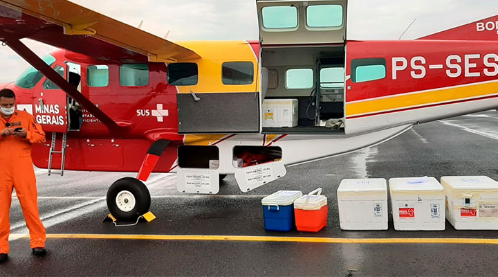 A exemplo de outras remessas que chegaram a Uberaba esta semana, ontem o carregamento foi entregue em avião dos bombeiros
