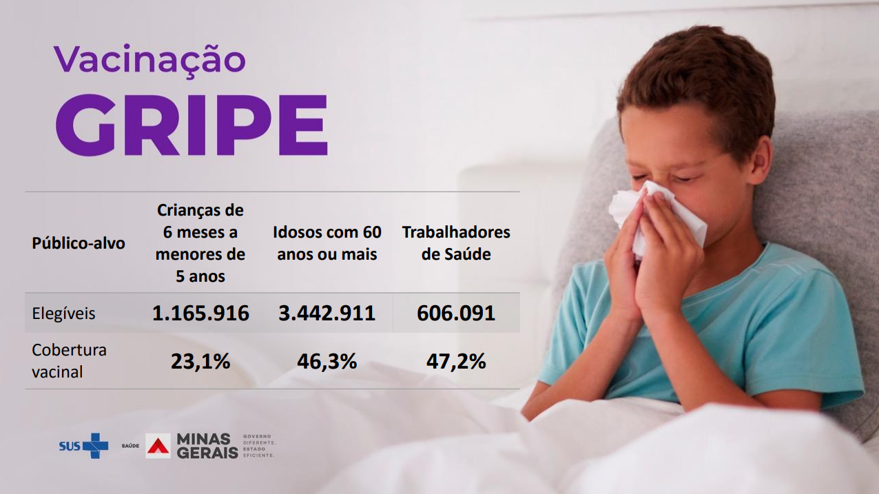 O público-alvo da campanha da vacinação contra a gripe se divide em três grupos: crianças de 6 meses a menores de 5 anos (23,1% vacinados), idosos com 60 anos ou mais (46,3% vacinados) e trabalhadores de saúde (47,2% vacinados).