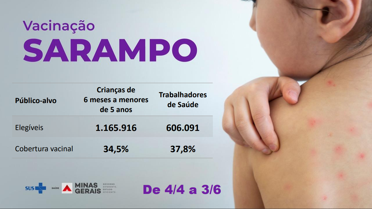 Sarampo. A vacinação contra o sarampo, segundo os dados do Estado, também está abaixo do ideal. Dos grupos prioritários, crianças de 6 meses a 5 anos somam apenas 34,5% da cobertura vacinal, e de trabalhadores da saúde, apenas 37,8% vacinaram.