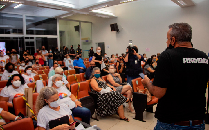 Durante a votação na Câmara Municipal de Uberaba, o sindicato mobilizou professores para participarem em plenário e pressionarem para que o rateio do saldo remanescente do Fundeb fosse pago apenas para os profissionais do magistério, o que gerou embate com os servidores da área administrativa das escolas.
