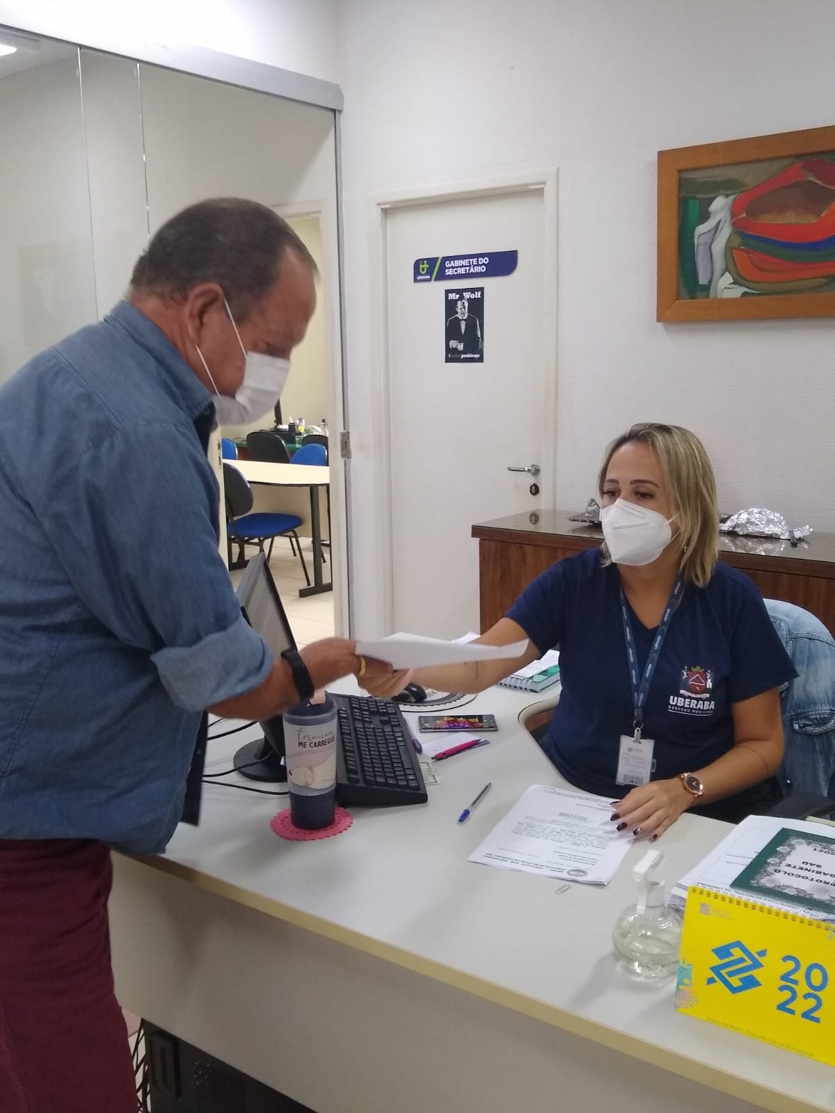 Presidente do Sindicato dos Servidores, Martinho Pereira, ao protocolar a pauta do funcionalismo na Secretaria de Administração (à esq.)