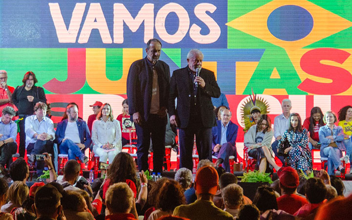 Evento de lançamento da pré-candidatura de Kalil e Lula, em Uberlândia, foi marcado pelo uso de um drone que despejou líquido duvidoso em apoiadores (Foto/Guilherme Bandeira Nakamura)