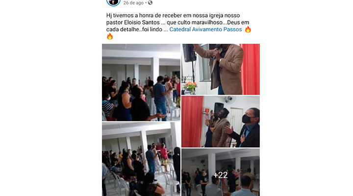 Não há informações no Portal sobre que tipo de agenda o vereador foi cumprir nas cidades. O denunciante encaminhou print de um post no Facebook, que mostra uma fiel de uma igreja evangélica postando fotos de um culto em Passos na data, com a participação do vereador.